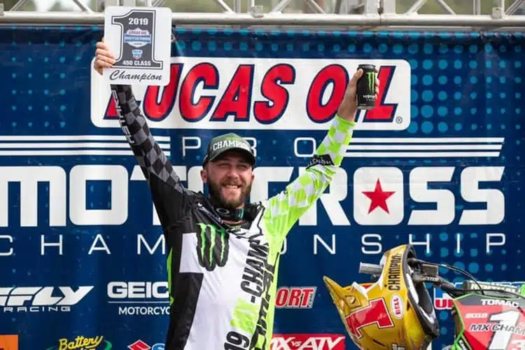 En 450, Eli Tomac n’a pas tremblé pour aller cueillir son troisième titre d’affilée. Auteur de deux manches parfaites, le pilote Kawasaki a prouvé qu’il méritait amplement son titre et cette fois-ci, ni Ken Roczen, en dedans physiquement ce week-end, notamment en deuxième manche (2/7), ni Marvin Musquin (3/3), victime d’une petite chute en première manche et en manque de rythme selon lui, n’ont plus le bousculer. Tomac est parti dans les premiers et à chaque fois, il a lâché ses rivaux. L’homme qui l’a finalement le plus chauffé est Jason Anderson qui lui a collé un semblant de pression en seconde manche (4/2). De quoi finir seconde de la journée, à égalité de points avec Marvin…
