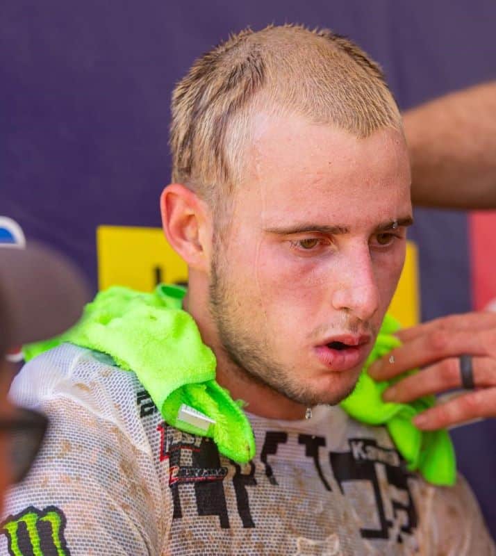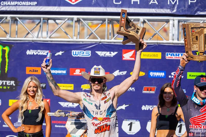 On pense aussi à Chance Hymas, très confiant à l’ouverture. Atteint par une intoxication alimentaire, le jeune pilote Honda s’est tout de même offert le holeshot en première manche, avant de sortir de la piste puis de rétrograder jusqu’à la treizième place, avant de renoncer à la seconde manche. Là aussi, ça paraît plié pour le titre.