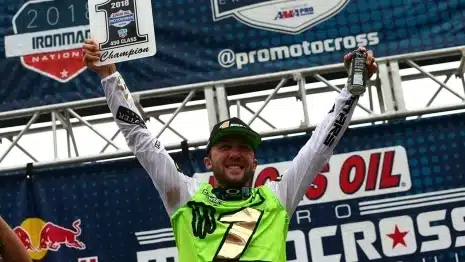 Avec 20 points de retard sur Tomac, il aurait fallu que Marvin Musquin bénéficie d’un coup de pouce du destin pour subtiliser le titre à son adversaire. Hélas pour les fans du Français, et pour Marv’, il n’y eut pas de coup du sort. Les deux manches, malgré des conditions dantesques se sont déroulées « normalement » et c’est le pilote Kawa qui décroche la couronne à la faveur d’un 2/9 amplement suffisant. Il aura juste eu besoin de forcer son talent en première manche après un départ en 5e position pour revenir sur Barcia, en bagarre avec Nicoletti pour la tête de course. Mais en seconde, l’écart qui le séparant de Marvin étant de 24 points, Tomac a joué la prudence et s’est contenté de dérouler après un départ en fond de paquet. Du coup, c’est Justin Barcia qui signe la performance du jour, un beau doublé, sans que cela ne lui permette de renverser la vapeur au classement final puisqu’il termine 4e, à un point de Roczen… A noter sinon la bonne performance de Valentin Teillet qui signe au guidon d’une 350 un joli 8/10 sur une piste encore une fois compliquée.