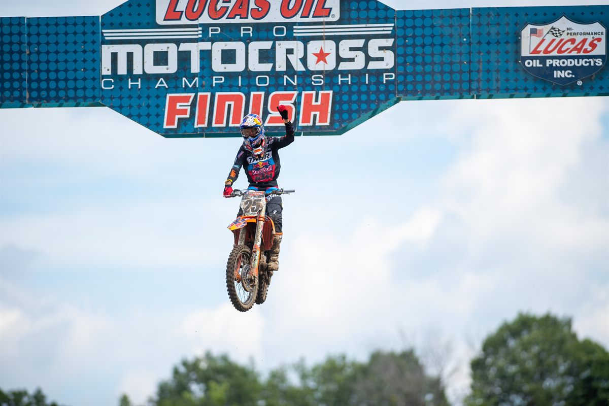 Premier podium en outdoor pour Brandon Hartranft, qui donne ainsi de quoi sourire au team TLD/KTM, pas à la fête depuis le début de la saison. Et qui, selon les rumeurs, deviendrait TLD/GasGas dès l’an prochain, avec deux pilotes en 250 (Brown/Drake/Hartranft, un va sauter !) et un pilote 450 (Barcia serait signé). Costaud et lourd, BH a souvent eu du mal avec ses départs, mais là c’est passé. Le gars est rapide et en pleine forme, avec des temps aussi bons en fin de manche qu’au début. Après son podium en SX, Hartranft est en pleine progression.