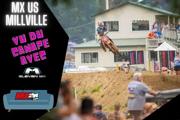 Millville, round 7 du championnat déjà, et on y voit un peu plus clair après cette épreuve disputée sur la superbe piste préparée par la famille Martin. Des grosses descentes et montées, des sauts impressionnants mais qui n’avaient pas l’air dangereux, de la place pour doubler, les whoops en sable signatures du tracé, et une terre sableuse qui a permis de rouler dans de bonnes conditions malgré la pluie de la dernière manche de la journée, on a vécu encore une bien belle journée de MX US.