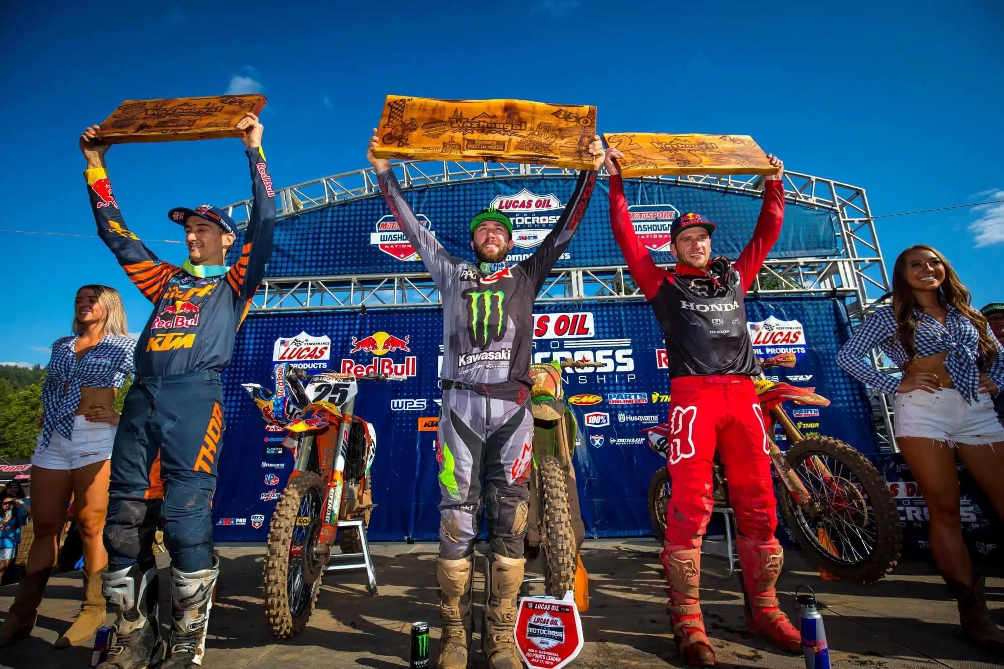 On connait Eli Tomac, quand il se sent bien et qu’il ne se prend pas la tête, il écrase ses adversaires. C’est ce qu’il a fait dans l’état de Washington en livrant deux manches parfaites. Lors de la première, pointé à la 7e place au premier tour, il reviendra prendre la tête de course à trois boucles de la fin aux dépends de Roczen après avoir mangé tous les gros bras de la catégorie, Musquin, Anderson, Webb… En seconde, parti vers le top 15, il fera encore plus fort puisqu’il accrochera le leadership 10 tours plus tard ! Encore une fois, il y avait lui et les autres, en l’occurrence, Ken Roczen, bien parti et étonnement véloce pendant toute la manche. Et Marvin Musquin qui, un poil en dedans lors de la première course, s’accrochera pendant un bon bout de temps jusqu’à ce 11e tour fatidique… Il devra du coup se méfier du retour de KRoc à Unadilla dans deux semaines…