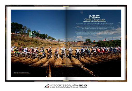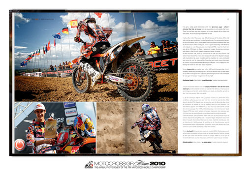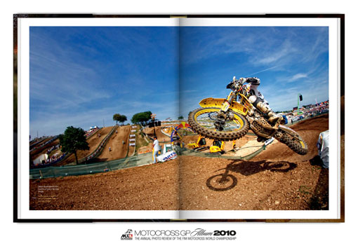 Voici la seconde livraison, déjà, de l’annuel des Grands Prix MX : « Motocross GP Album 2010 », sous-titré « Panorama photo annuel du Championnat du Monde de Motocross FIM » et labellisé « MX1 FIM Motocross ». C’est l’œuvre de Stanley Leroux, jeune auteur-photographe-graphiste passionné dont certains ont découvert le travail l’an passé à la même époque avec le premier volume de cette compilation annuelle (MX GP Album 2009), mais qui s’était déjà fait remarquer en tant que designer de plusieurs sites web spécialisés, tels ceux de Mickaël Pichon ou MX Large notamment.