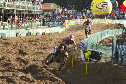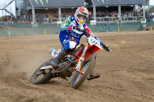 Troisième, les italiens ont évidemment pu compter sur Antonio Cairoli. Vainqueur de sa manche qualificative, Tony sera l’homme à battre demain en catégorie MX1. Il l’a annoncé en conférence de presse post-course, il veut gagner ses deux manches. Guaneri, 5ième en catégorie Open, et Lupino, 17ième en MX2, devront cependant faire fort pour espérer emmener le team italien sur le podium.