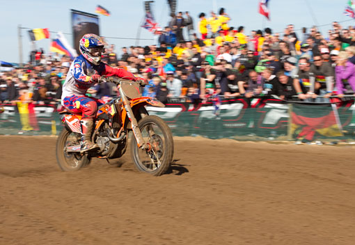 Antonio Cairoli a largement dominé cette première manche de la journée. L’italien va rapidement s’installer en tête de la course et prendre plusieurs longueurs d’avance. Il va cependant subir le retour de Gautier Paulin à la mi-course. Mais Tony a su bien réagir et garder le français à bonne distance.