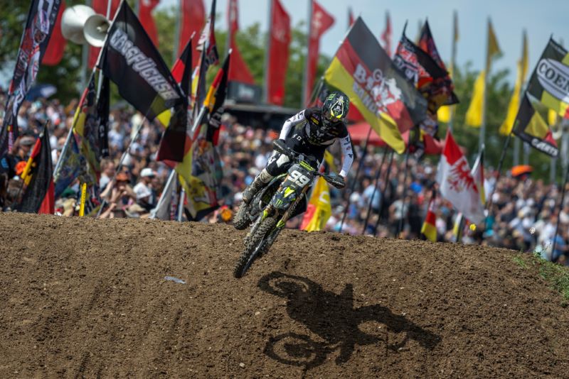Lucas Coenen a tout de même été impressionnant de régularité, en terminant deuxième pour la troisième fois consécutive. Profitant de ses bons départs, Lucas a tenu bon face à JH84 dans la première manche, mais a cédé à la pression dans la deuxième. Leader du championnat, Romain Febvre a connu un week-end compliqué, gêné par des erreurs et des retardataires, mais parvient à conserver la tête du championnat avec une troisième place finale. Il reste néanmoins sous pression, son avance passant de 45 à 36 points. Derrière, Maxime Renaux (6/4) a fait le boulot malgré des départs relativement moyens. Il devance au général son coéquipier Calvin Vlaanderen, sur le podium en première manche, qui signe son meilleur résultat de la saison. On déplore la blessure de Pauls Jonass en première manche, clavicule et omoplate cassées. Décidément, ce MXGP d’Allemagne ne lui réussit pas, puisque c’est déjà là qu’il s’était blessé la saison dernière. Dur, à une semaine de son MXGP national… Grosse chute aussi pour Ruben Fernandez dès le premier tour de la première manche. On attend des news rassurantes.
