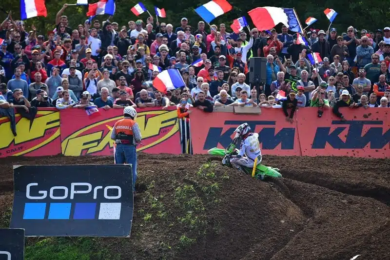 Maxime Renaux est un poil plus brouillon, mais son attaque et sa capacité à doubler ont électrisé le public présent. Rapide, spectaculaire, expressif sur la moto, il a vraiment marqué des points auprès des fans français ce week-end. Avec 91 points d’avance sur Jago Geerts, Renaux se rapproche façon Express de son premier titre mondial MX2, et c’est cool.