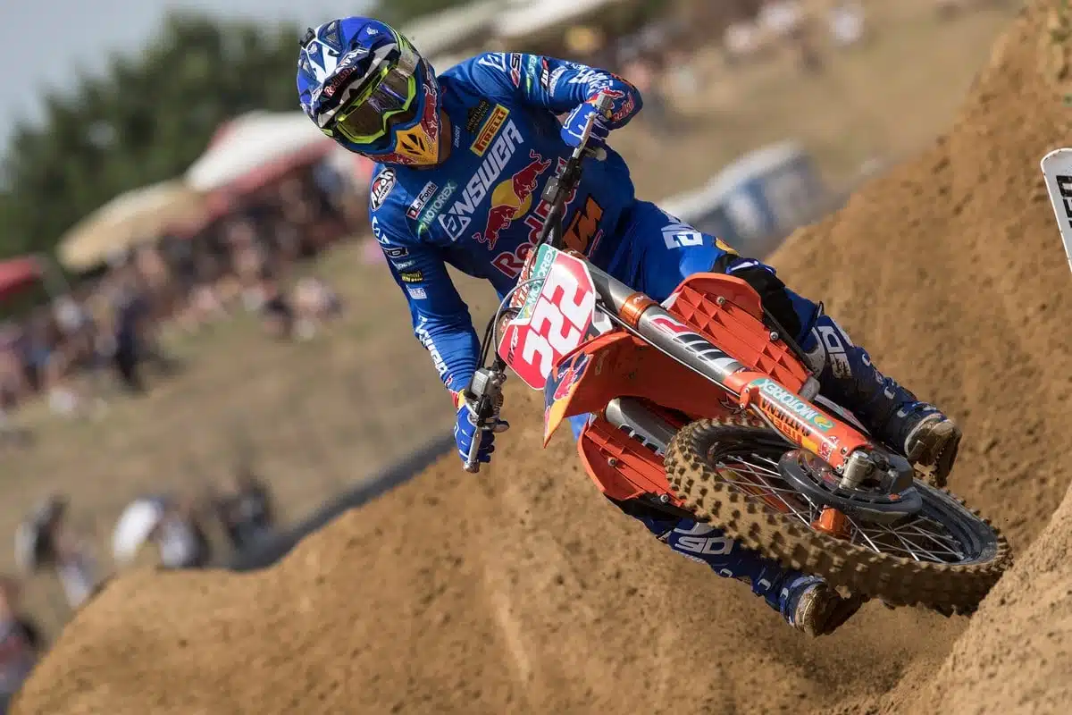 Cairoli est au sommet de son art. Même Jeffrey Herlings n’a pu lui contrer la route sur une piste où il excelle d’habitude. Encore une fois, l’octuple champion du Monde a fait parler son étonnante vitesse, son expérience et son incroyable condition physique. En Italie, il y avait lui, Herlings, un poil derrière, physiquement notamment (il termine 32 secondes derrière en seconde manche), et le restant du monde, bien loin derrière. Antonio signe donc un doublé magistral devant un public tout acquis à sa cause. Le Hollandais signe deux honorables secondes places alors que la troisième place du podium échoue à un surprenant Max Anstie, à l’aise sur une silice exigeante. Belle course également de Romain Febvre qui aurait pu prétendre au podium avec un meilleur second départ, tout comme Gautier Paulin, englué aux portes du top 10 dans le second round. Jordi Tixier finit 16e du GP (11/30) alors que Milko Potisek une 19e (14/28) et Maxime Desprey, une 31e (22/31). Au final, on se dit qu’il va être difficile d’aller barrer la route de Tonio dans la conquête de son neuvième titre !