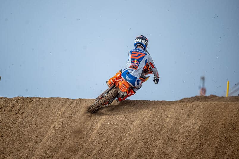 En MXGP, Lucas Coenen avait parfaitement commencé le week-end avec la victoire en manche de qualifications. Auteur du meilleur départ en première manche, le pilote KTM s’est envolé devant et l’emporte devant Jeffrey Herlings et Romain Febvre, qui a réussi à passer Tim Gajser en fin de manche. Ruben Fernandez complète le top 5 devant Maxime Renaux. 18e place pour Quentin Prugnières.