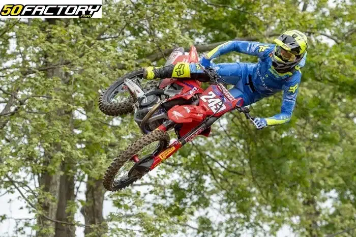 Chez les MX2, Jago Geerts s’impose sur ce MXGP d’Italie après un cavalier seul en première manche pour la victoire et une belle deuxième place dans la seconde. Parti troisième derrière Tom Vialle et le jeune Kay Karssemakers, il a vite doublé le Hollandais avant de rester à distance de Tom Vialle, plus de six secondes derrière. Mais le Belge a ensuite mis le turbo pour fondre sur Tom jusqu’à être quasiment en mesure de l’attaquer au dernier tour. Il remporte donc le GP et creuse de six points l’écart sur Tom Vialle.