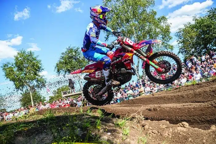 Il faut dire que le garçon a toujours du genre précoce. Champion du monde et d’Europe 65 à 10 ans, champion EMX125 à 14 ans, il fait ses débuts l’année suivante, en MX2 à Assen, en 2016, et quels débuts ! Vainqueur de la manche qualificative du samedi (déjà une habitude…), il se permet de lendemain de rester huit tours devant Sa Majesté Jeffrey Herlings, qui n’a perdu que trois manches cette année-là, pour finir terminer deuxième. Vainqueur de trois GP dès l’année suivante, puis deux fois champion du monde consécutif, Jorge Prado a gagné 31 GP en MX2, et en est déjà à 8 en MXGP. Et mine de rien, si ce MXGP d’Italie se passe normalement, il va prendre son troisième titre mondial, le premier dans la catégorie reine, le premier pour l’Espagne et pour GASGAS. De quoi forger sa légende, lui qui est déjà le premier espagnol champion du MX2, le deuxième tout court, après le titre MX3 de Carlos Campano en 2010. A 22 ans, l’avenir lui appartient. Reste à savoir de quel côté de l’Atlantique, puisqu’il n’a jamais réellement fermé la porte à une aventure US. Après tout, il est également plus jeune que Tom Vialle… A suivre.