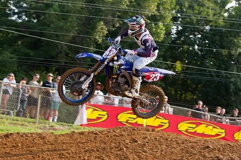 Avec 78 points d’avance à la veille de l’avant dernière manche de la saison, Aaron Plessinger pouvait l’aborder presque à la cool cette course de Budds Creek pour décrocher le titre. Et pourtant, ce n’était pas dans les plans du pilote Yamaha Star Racing qui, pour être tranquille, décrocha le titre à l’issue de la première manche après une course parfaite, comprenez en enchainant un holeshot et une course en solitaire. Il eu juste à mettre un peu d’espace avec son poursuivant direct, RJ Hampshire, lequel avait également réussi à se détacher d’un duo de furieux ; Austin Forkner et Mitchell Harrison, pilote HVA, en plein fight. La manche se résuma donc à un cavalier seul en tête du grand échalas de la catégorie, aux antipodes de celle de Dylan Ferrandis qui après un départ moyen dû sortir la grosse attaque pour revenir devant. C’est Jordon Smith qui en fit les frais en se faisant passer dans le dernier tour…