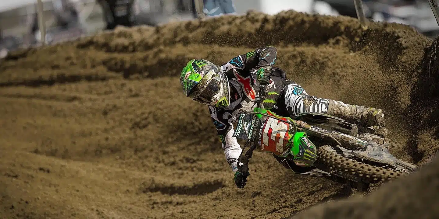 Une de plus ! Les courses se suivent, mais invariablement, c’est Eli Tomac qui sabre le champagne. Dans le Tennesse, l’officiel Kawa y est encore allé de son festival pour accrocher une nouvelle victoire à son palmarès. Si en première manche, ce fut une formalité puisqu’il n’eut qu’à se débarasser au premier tiers de la manche de Ken Roczen, auteur du holeshot, lors du second débat, ce fut une autre paire de manches. La faute à un départ catastrophique qui l’a contraint à pointer dans le top 20 à la fin de la première boucle… Mais bon, on connait le loustic. Il s’est dépouillé, a mouillé le maillot et est parvenu à avaler ses adversaires un par un pour venir subtiliser la troisième place synonyme de victoire finale à Ken Roczen dans les derniers tours. Sur le podium final, il précède Justin Barcia, dans un bon jour avec deux secondes places (qui n’a finalement pas remporté l’péreuve comme le déclare le site du promoteur, toutes nos confuses…) et Marvin Musquin qui s’est vengé d’une chute en première manche dans les premiers virages en enlevant une victoire imparable dans la seconde course. Bref, une nouvelle fois, c’est Tomac qui signe la bonne opération puisqu’il accentue son avance avec 32 points d’avance sur Musquin au provisoire.