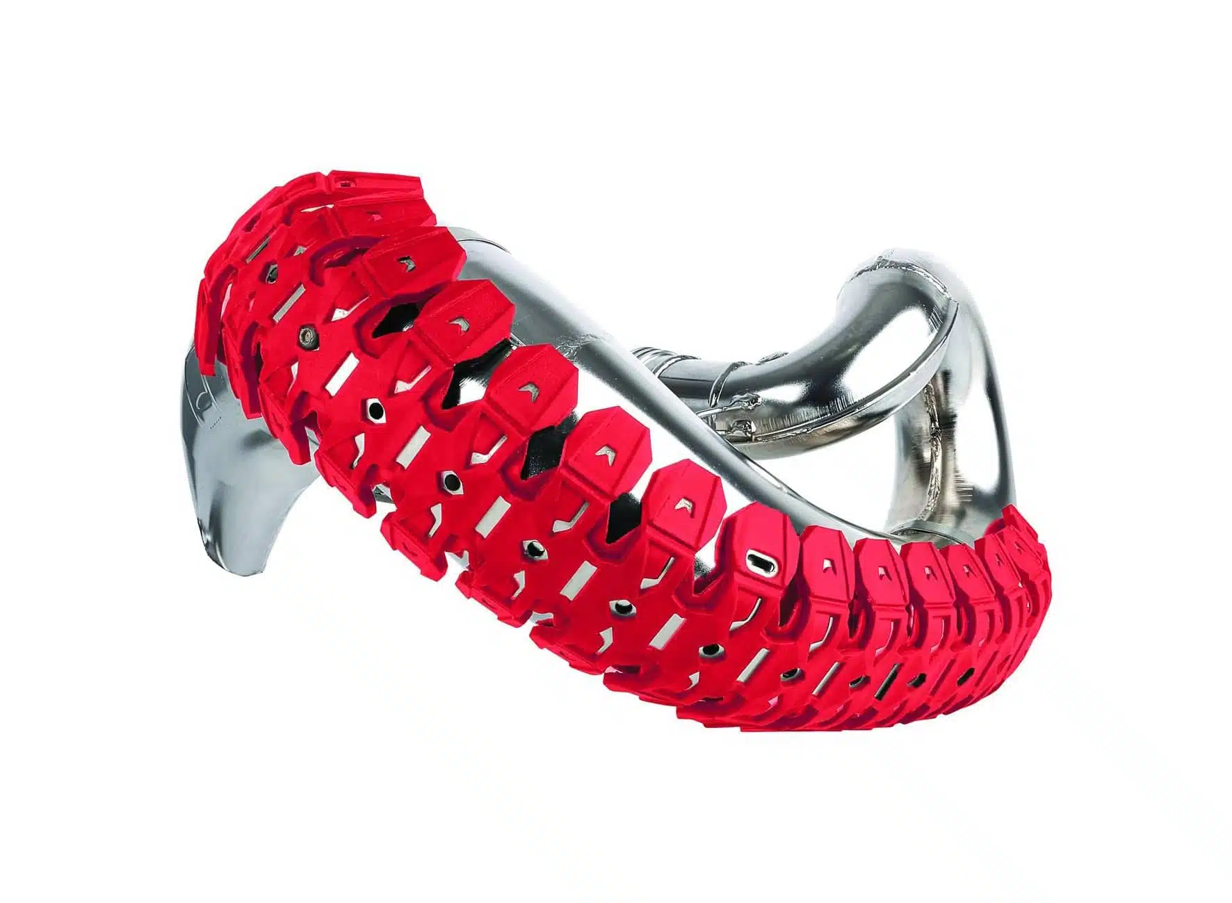 Pour 2019, Polisport spécialiste portugais du kit plastique et des protections, propose un nouvel élément pour protéger les échappements des machines 2-temps. Ce nouvel élément est fabriqué en rassemblant deux matériaux : de l’acier inoxydable d’une part et un élastomère pour améliorer la protection d’autre part.