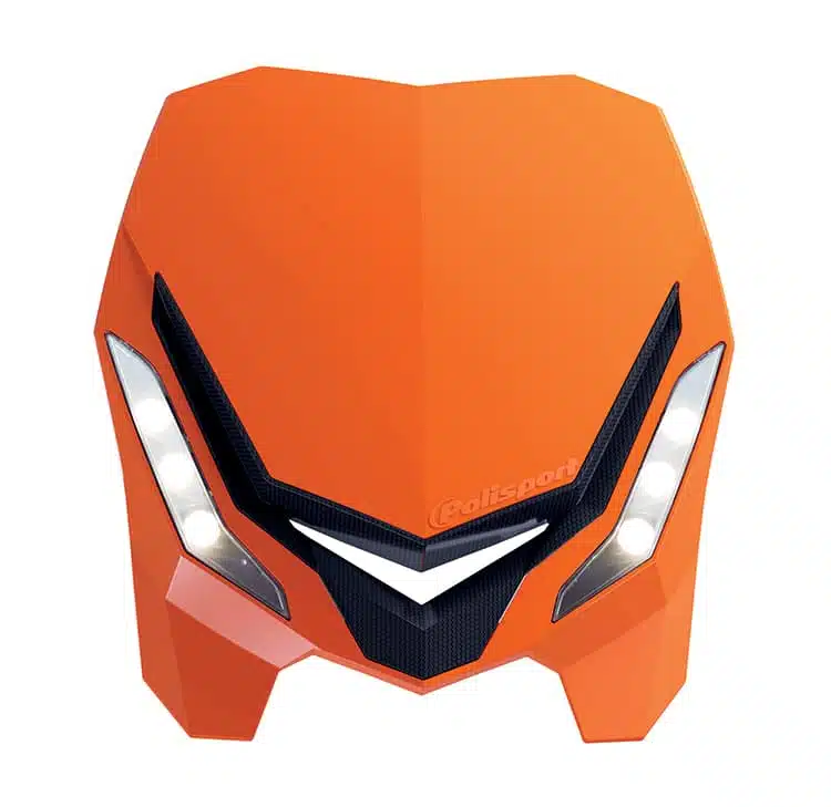 La plaque-phare proposée par Polisport bénéficie d’un look novateur, donnant à votre à votre moto une allure plus moderne et racé, proche des machines de MX. Elle est d’ailleurs disponible en cinq coloris différents (orange, noir, bleu, gris, rouge), accordez donc la couleur de votre moto avec la couleur des LED. Pour la finition, Polisport a utilisé un insert façon carbone.