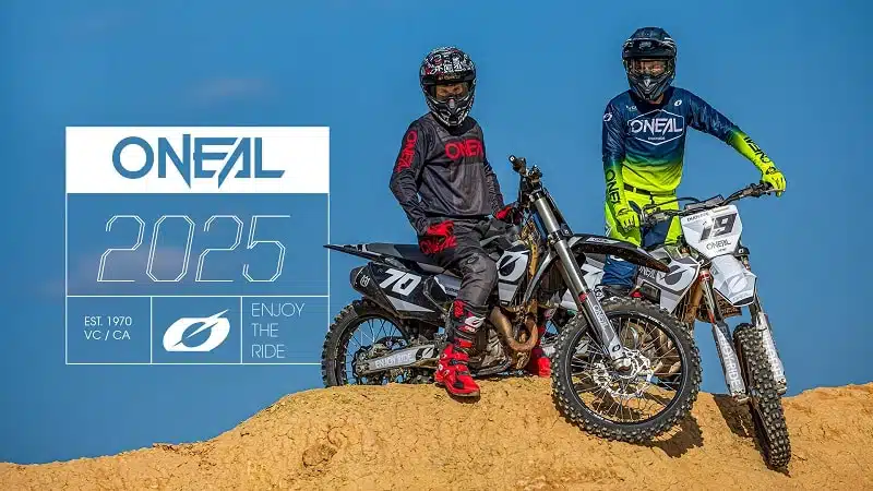 Cela fait maintenant 55 ans. Les bureaux se trouve à seulement quelques kilomètres de l’ancienne piste de Hopetown. Aujourd’hui, vous pouvez toujours trouver la même passion dans chaque produit fabriqué par O’neal. Vous pouvez également retrouver Jim en course et à vélo dans le sud de la Californie dès qu’il en a l’occasion. Jim participe toujours à des courses de Baja et son dynamisme, son courage et sa détermination l’ont conduit à remporter le plus grand nombre de victoires en catégorie en Baja de l’histoire. L’obsession de Jim a donné naissance à une marque qui restera à jamais ancrée dans l’histoire du motocross américain. Enjoy the ride, comme ils disent là-bas, avec la nouvelle collection 2025, portée en autre par le jeune rookie de chez KTM Julien Beaumer, Tommy Searle ou encore Marvin Musquin lui-même !