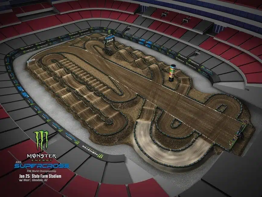 Après une soirée d’Anaheim 2 qui a battu des records de controverses avec cette attaque légèrement mal calculée de Dylan Ferrandis, mais aussi sa première victoire de la saison 2020, changement de décor du côté de Glendale, Arizona. En effet, c’est la première épreuve « Triple crown » de l’année, c’est à dire qu’il y aura trois finales par catégorie au lieu d’une, le classement général donnant le vainqueur de la soirée, qui se voit ainsi créditer d’une victoire au palmarès du championnat US.