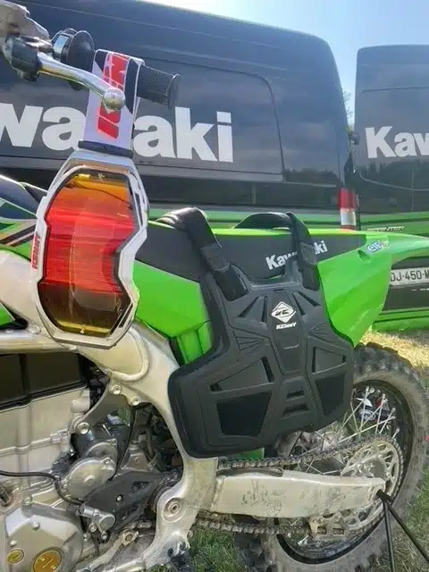 Le nouveau pare-pierre Kenny Mission dispose de panneaux moulés étudiés pour absorber l’énergie de l’impact. Son galbe proche du corps le rend confortable, extrêmement souple et résistant. Les sangles disposées aux épaules, biceps et au torse permettent de l’ajuster pour chaque morphologie. Bien évidement ce dernier dispose de l’homologation FFM pour la pratique de la moto de compétition. Dédé de la fédé ne pourra pas vous le refuser, même s’il mal luné !