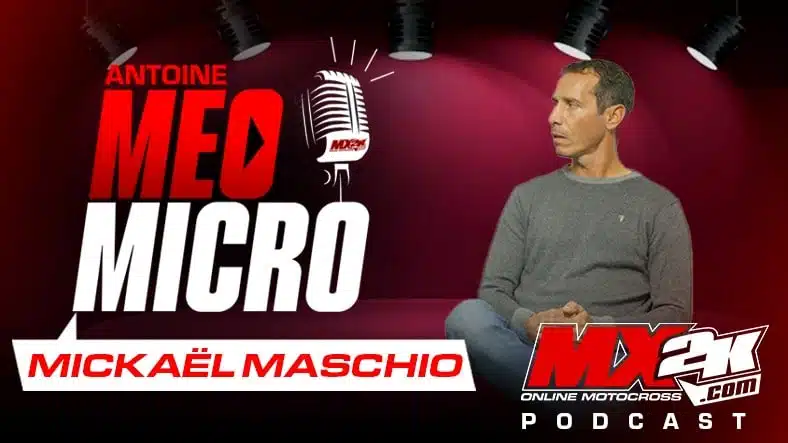 Méo Micro, épisode trois déjà ! Après l’introduction de la démarche par Antoine Méo et son pote Alban, qu’on peut retrouver ici, puis l’entretien très intéressant avec la légende du MX/SX français Jean-Michel Bayle disponible ici, voici donc le tout nouvel épisode, avec une fois encore un pilote champion du monde. Pas le plus médiatique, pas le plus « grande gueule », mais sûrement un des plus attachants, en la personne de Mickaël Maschio. Mické a beau avoir débuté tard en MX, après des années de BMX malgré tout formatrice (demandez à Jeremy McGrath !), il s’est vite rattrapé. De 21e du championnat de France Cadet en 1988 à troisième du Junior seulement deux ans plus tard, derrière Cyril Porte et Jean-Jacques Témoréré, le double MM a vite compris comment ça marchait !