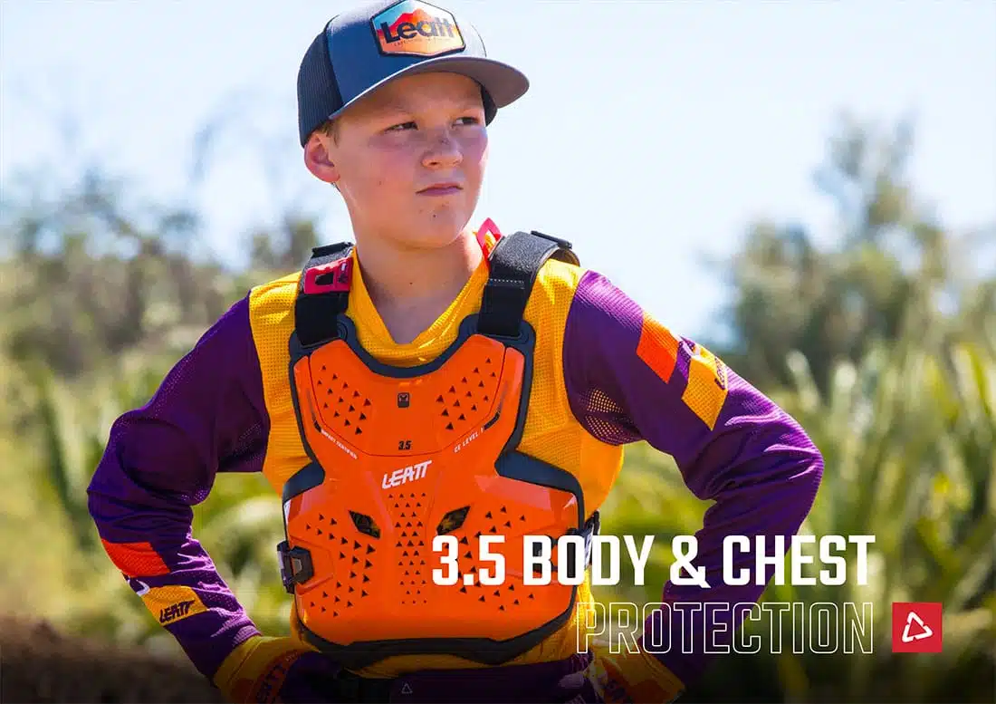 Découvrez les nouveaux protège-poitrines Leatt, design et sophistiqués assurant une protection optimale à vos enfants lorsqu’ils sont sur la moto.
