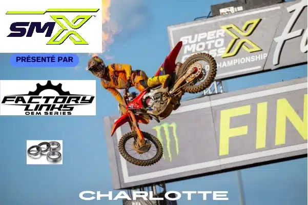 Le résumé des SMX playoffs de Charlotte est présenté par Factory Links, la marque qui propose des roulements dont la conception permet un rendement optimal, répondant aux conditions de pilotage les plus rudes. Les kits Factory Links sont conformes aux normes origines et résistent même à des charges beaucoup plus élevées que les recommandations standards.