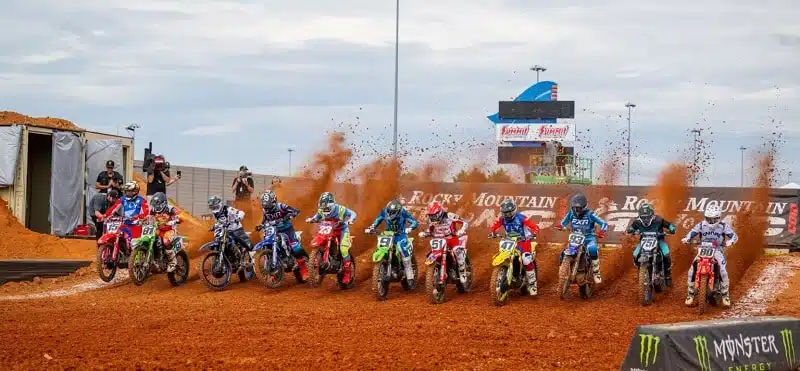 Les playsoffs SMX s’ouvrent ce week-end à Charlotte, en Caroline du Nord. C’est à dire avec des horaires de la côte est qui mettent la première manche de la soirée en prime time, pour une fin vers avant minuit. On rappelle le principe : un terrain hybride MX/SX, des points distribués par soirée (25 pour le vainqueur ici, 50 pour le prochain round et 75 pour la finale), et des énormes primes d’arrivée. Chaque épreuve se disputera en deux manches de 20 minutes plus un tour. Le classement général de la soirée est établi selon le système de points olympique : chaque pilote reçoit un nombre de points correspondant à sa place (1 point pour le vainqueur, 2 points pour le deuxième, 3 points pour le troisième, et ainsi de suite). À l’issue des deux manches, le pilote totalisant le plus petit score est déclaré vainqueur de l’épreuve.
