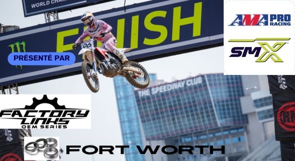 Le résumé des SMX Round 2 de Fort Worth est présenté par Factory Links, la marque qui propose des roulements dont la conception permet un rendement optimal, répondant aux conditions de pilotage les plus rudes. Les kits Factory Links sont conformes aux normes origines et résistent même à des charges beaucoup plus élevées que les recommandations standards.