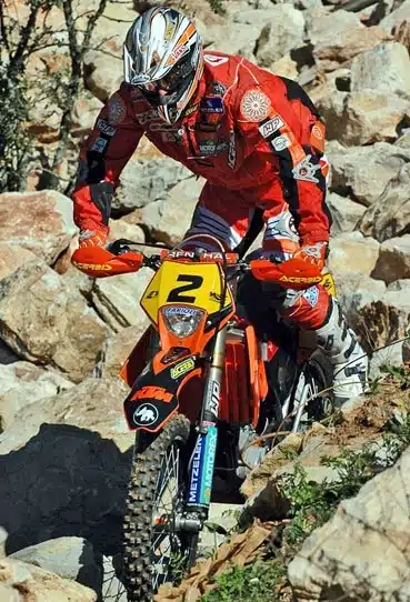 Stefan Merriman (AUS – Yamaha) returned to Enduro 2 as though he had never been away after retiring on Saturday with a knee injury. Samuli Aro (SF – KTM) however made him battle for every second and the pre-season billing of the tremendous fight between these two was beginning to live up to its expectations at last, as Merriman’s lead at the finish was just less than 1.5 seconds! Merriman explained afterwards “I was in very bad pain on Saturday and couldn’t stand up on the bike after wrenching my knee in a crash. There was no way I could continue without being able to stand up, so we took the decision to retire early and have lots of treatment overnight. It paid off and I’m delighted, but it was a very close call at the finish, Samuli pushed very hard and I only just held him off for the win”. Fabien Planet (F – KTM) was a strong 3rd but in reality, he couldn’t match the electric pace of the two leaders. Despite this, ‘Hollywood’ as he is known in the paddock was delighted with his weekend’s performance and promised that there was more to come this year.