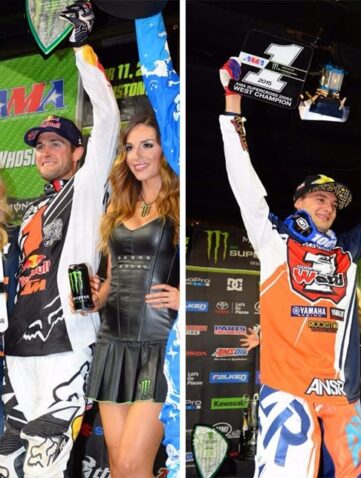 Résultats 450 1. Eli Tomac, Cortez, Colo., Honda 2. Ryan Dungey, Belle Plaine, Minn., KTM 3. Cole Seely, Laguna Beach,...