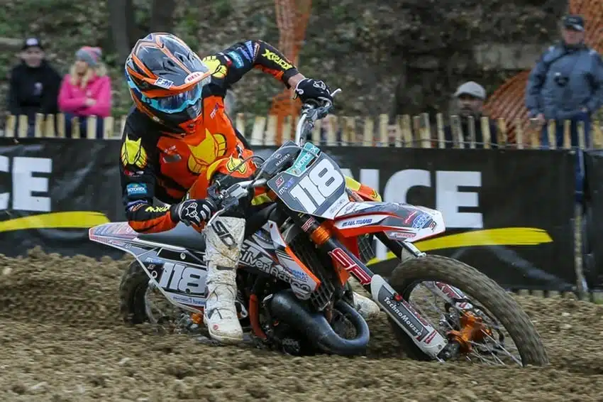 Je roule au moins trois fois par semaine, parfois quatre. Et je fais beaucoup de sport, ce n’est pas un problème, j’adore ça. Je suis un programme de CrossFit et c’est mon coach du CrossFit, qui travaille aussi avec plusieurs enduristes, qui me concocte mon programme complet, avec course à pied, vélo, piscine, rameur, muscu, cardio, etc, toute ma préparation physique passe par lui. En revanche, en ce qui concerne l’entraînement à moto, on se débrouille avec mon père. Cela dit, dès que possible, je rejoins le team en Italie, à Erbusco, près de Brescia, nous échangeons beaucoup, nous restons en contact en permanence et surtout j’essaie de rouler le plus possible en compagnie de Jens Getteman, le Belge, pilote MX2 de l’équipe. Oui, je fais le maximum pour mon sport, je veux m’y consacrer entièrement, tout donner pour le MX, avec en tête l’ambition de devenir un véritable pilote professionnel.