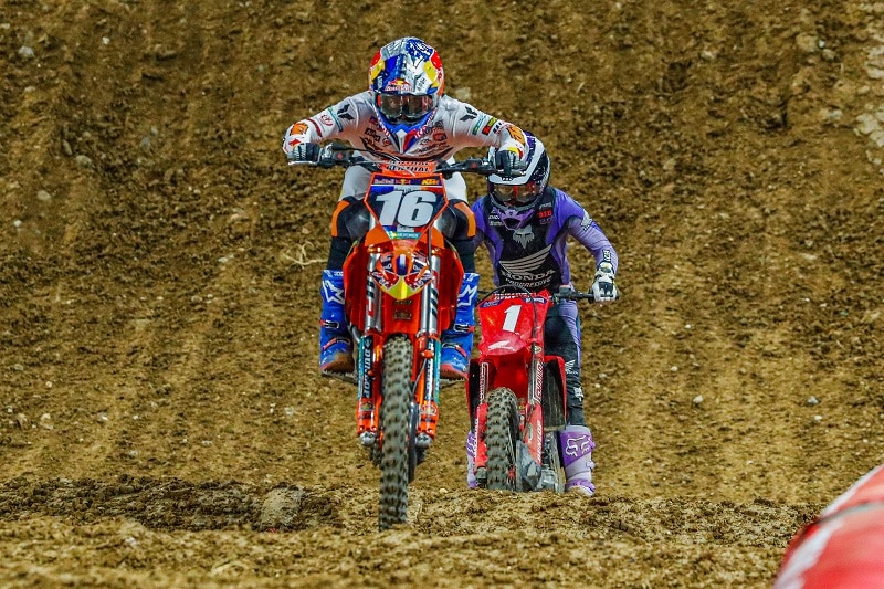 Bref, LE Jett, quoi, celui qu’on se doit de voir rouler au moins une fois “en vrai” quand on est un vrai passionné de MX/SX. Et après avoir honoré sa parole des années précédentes de venir à prix “discount” après les différents épisodes COVID et cie, on se doute cette fois que l’organisation a dû casser son cochon pour faire venir Jett et son frère Hunter dans la capitale. Qui plus est, comme on ne peut le faire tourner seul dans l’UArena, il faut bien lui trouver de l’opposition, comme Cooper Webb, son dauphin cette saison en SX US. C’est à dire qu’on avait les deux premiers du classement final du SX US au départ, plus Malcolm Stewart, Hunter et le retour de Dylan Ferrandis à Paris. Et malgré cela, on continue de voir des fans se plaindre sur les réseaux sociaux de la qualité du plateau, en se plaignant du manque de “profondeur” de ce dernier. Alors, pour y répondre : d’une, c’est ignorer les réalités économiques. Là, on est déjà sur du gros billet à lâcher. Deux, les quelques deux/trois pilotes qui apporteraient cette profondeur sont les mêmes qui n’intéressent personne quand ils roulent en WSX. Du coup, on fait quoi ? On arrête le Supercross de Paris après cette 41e ? Je ne travaille pas pour l’organisateur, mais reconnaissons que proposer ce plateau est unique au monde, à moins d’aller évidemment voir du SX US. Et c’est nous qu’on l’a, comme on dit au bourg !