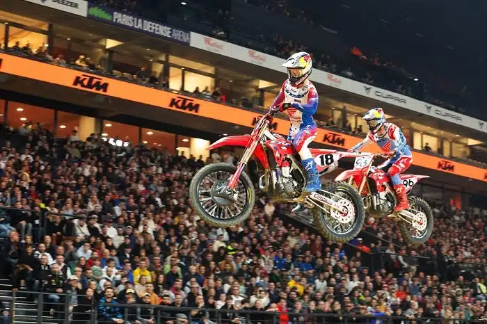 Le Supercross de Paris nous avait régalé hier au niveau des courses, et n’a pas déçu aujourd’hui non plus avec quelques rebondissements et faits de course distrayants, pour utiliser un doux euphémisme. Et au final, les deux mêmes qu’hier s’impose en la personne de Jo Shimoda en SX2 et Jett Lawrence en SX1, mais ça n’a pas été facile ni pour l’un ni pour l’autre !