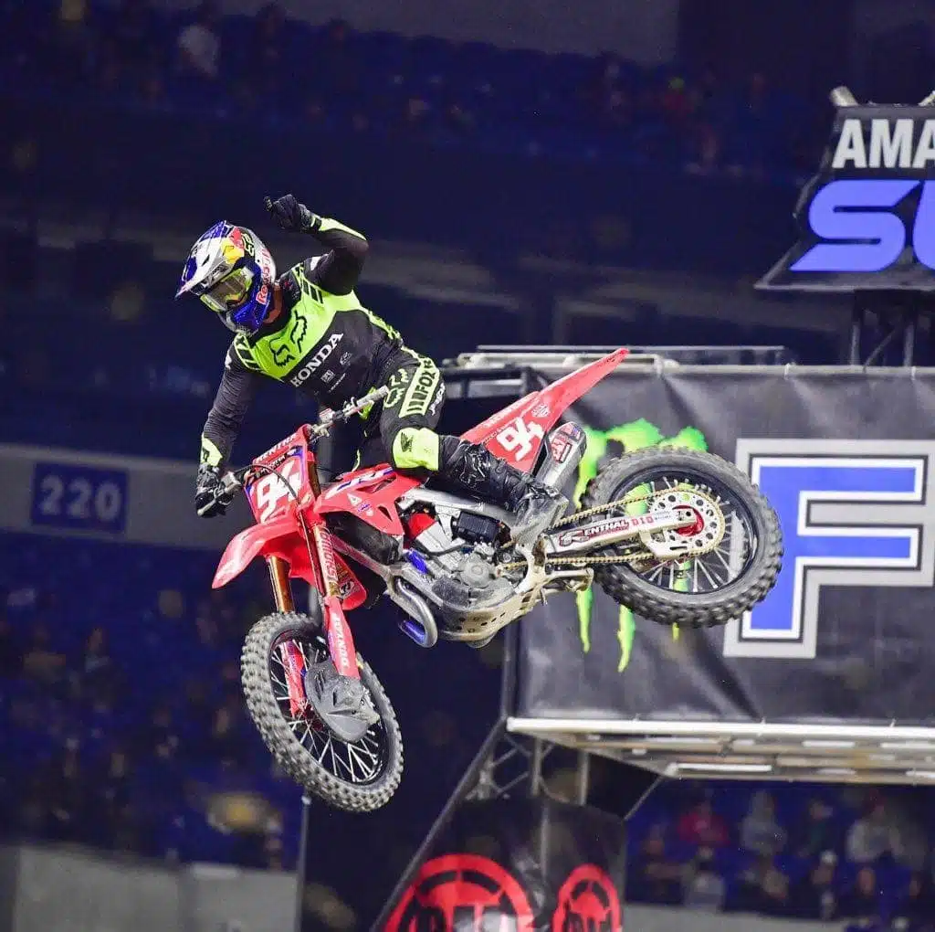 Après un rare holeshot, Eli Tomac a rapidement commis l’erreur tout seul en glissant, laissant Adam Cianciarulo et Ken Roczen batailler devant. Mais le champion en titre a vite rejoint les deux leaders pour une superbe bagarre à trois pendant un bon moment, avant que Roczen ne réussisse finalement à passer AC9, qui est parti à la faute peu après. Dylan Ferrandis, longtemps quatrième, est sorti de la piste mais a perdu quelques places.