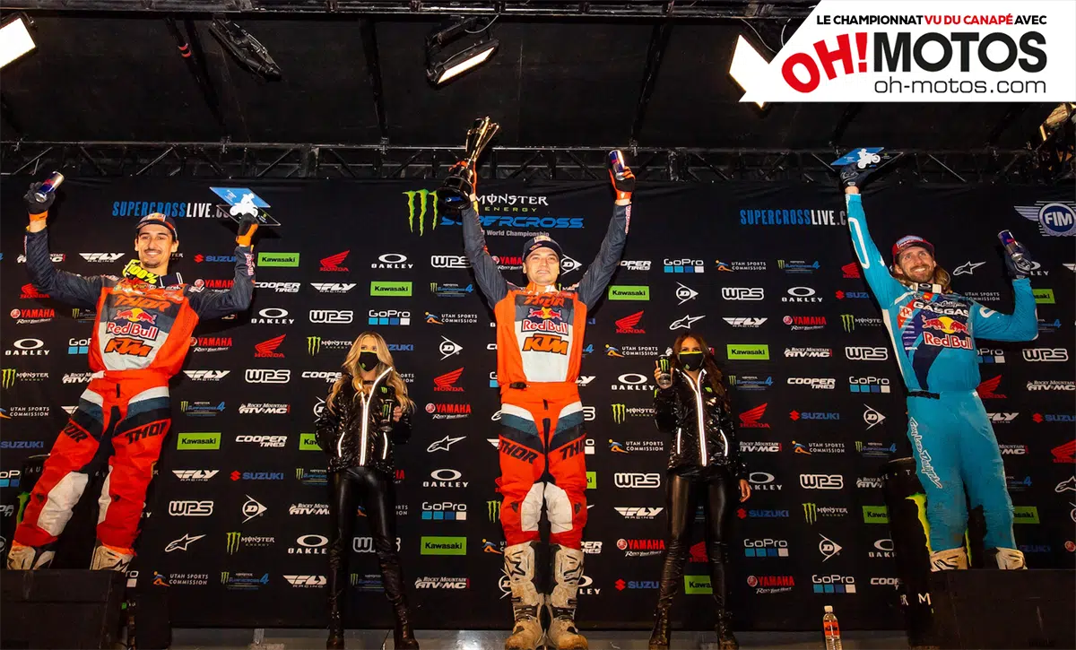 Encore une performance cinq étoiles, donc, d’un Webb qui tisse plus que jamais sa toile. Plus que six points de retard et une confiance au zénith pour le pilote KTM. Pourtant, très franchement, Musquin, Anderson, Ferrandis, Roczen… Tous auraient pu remporter cette finale niveau de vitesse pure. Mais c’est Cooper qui gagne, comme souvent ces dernière saisons. Au fait, ça faisait des semaines que je me demandais à qui son style, tout en sobriété et en efficacité, me faisait penser. J’ai enfin trouvé ! Cooper Webb est le Thierry Béthys US, en beaucoup moins souriant. Cooper « Boumboum » Webb !