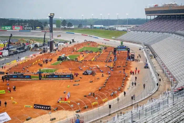 Le résultat de ces différentes consultations, c’est la volonté de « faire grossir le sport », comme ils disent. Une vieille obsession américaine qui a du mal à prendre forme, année après année. Le SuperMotocross sera-t-il la solution ? Pas facile à dire. On rappelle qu’on va qualifier les 22 meilleurs 250 et les 22 meilleurs 450 pour trois courses de play-offs, sur des circuits « hybrides », qu’on peut imaginer dans le style de feu la Monster Cup, tuée par le Covid puis ce projet, ou même comme la tentative de SMX Cup de Giuseppe Luongo en 2016 à Schalke. Au fait, ça voulait dire quoi SMX Cup ? Yep… Pour le moment, niveau calendrier, on parle du Speedway d’Atlanta, qui reçoit déjà le SX, le circuit des Amériques à Austin, théâtre du GP de F1, et le fameux Coliseum de Los Angeles. Le berceau du SX US, où a été créé le Superbowl of Motocross en 1972, premier évènement de MX dans un stade. L’ancêtre du SX, en somme. Un lieu où se déroulait traditionnellement la finale du SX US dans les années 90 ensuite.