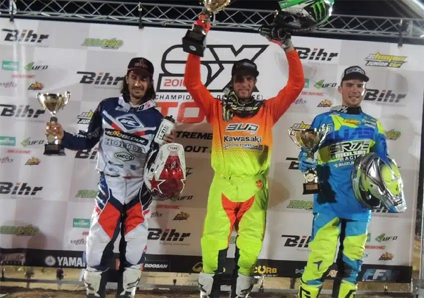 SX2 : Rchier au centre Champion, Le Hir AG 2ème et Irsuti AD 3ème du Cht de France SX Tour 2016 Outdoor