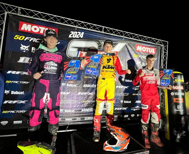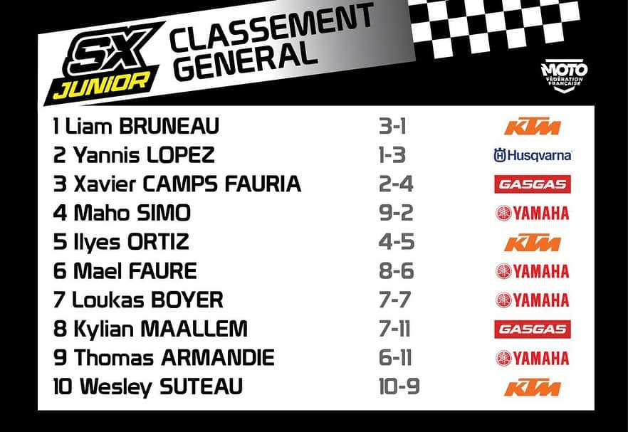 C’est Yannis Lopez qui s’est offert le holeshot de la première finale, et le jeune pilote Husqvarna n’a pas craqué, malgré la pression de l’Espagnol Xavi Camps en début de course. A l’aise sur le tracé de Saint-Simon-de-Pellouaille, il n’a ensuite pas fait d’erreur, et gagne ainsi sa première finale en SX Tour Junior, devant Xavi Camps et Liam Bruneau.