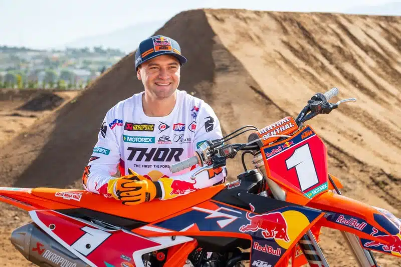 Déjà, il s’est entouré d’un top coach en la personne de Michael Byrne. L’Australien a en effet renoncé à son rôle de team manager pour s’occuper à plein temps de Cooper. Byrne est, selon les experts, un technicien hors-pair, capable de faire réaliser de gros progrès à ses poulains. Dans le temps, il avait réussi à faire de Blake Baggett un des meilleurs dans les whoops, par exemple, alors qu’il s’agissait d’une de ses faiblesses avant. Or, qu’est-ce qu’on entend des US ? Que Cooper viole littéralement les whoops à chaque passage en ce moment. Qui plus est, il s’entraîne au 83 Compound avec les frères Lawrence, le team Rocky Mountain de Savatgy, McElrath et Anstie ou encore Justin Bogle. De quoi garder les pieds sur terre jour après jour. Enfin, il dispose d’une nouvelle moto avec la KTM pré-2023. Une arme certes à double tranchant, puisque la machine sera à découvrir en conditions de course toute la saison, mais le consensus veut qu’elle soit redoutable dans les whoops… Là même où Coop lâchait du temps l’an dernier. Bref, le champion sortant sera à surveiller comme le lait sur le feu.