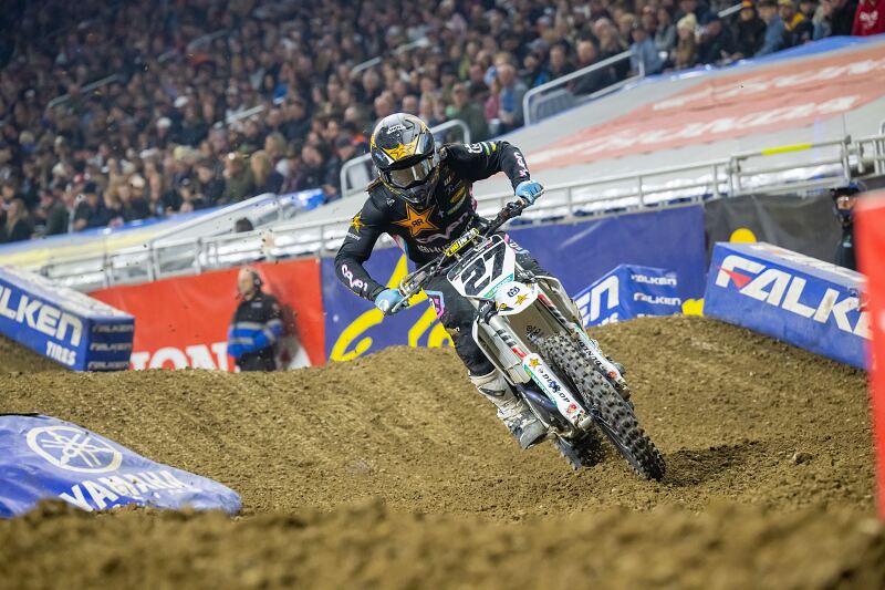 Après sa soirée de rêve devant son public la semaine dernière, Malcolm Stewart n’a certes pas retrouvé cet état de grâce à Detroit, mais confirme tout de même sa bonne forme du moment en prenant une très bonne quatrième place. Qui pourrait bien la sienne en ce moment, ou en alternance avec Jason Anderson, qui l’occupait avant de se mettre un poney de l’espace sur le 3/1.