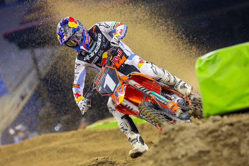 On notera la correcte huitième place de Dylan Ferrandis à Detroit, déjà plutôt à l’aise en heat. Par contre, soirée difficile pour Aaron Plessinger, seulement neuvième après avoir réalisé le holeshot. A sa décharge, le cowboy était malade et a dû serrer les dents pour arracher ce top 10.