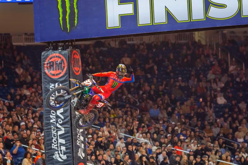 Encore une soirée de folie en SX US à Detroit, avec des rebondissements en pagaille et quelques grosses chutes. Les whoops ont été décisives, en envoyant pas mal de pilotes au tapis, notamment Hunter Lawrence en finale, qui perd gros. Ken Roczen, bien parti, s’offre la victoire devant Chase Sexton et Malcolm Stewart. En 250, Cole Davies est revenu de loin pour l’emporter devant Seth Hammaker et Jo Shimoda.