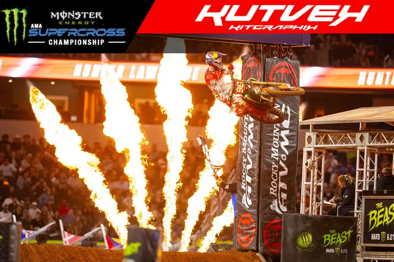 Une soirée remportée, donc, par Hunter Lawrence. Enfin, serait-on tenté de dire, après quatre deuxièmes places et deux quatrièmes places. Et encore, on se souvient que la dernière aurait dû être un podium si Huntah n’avait pas raté ses calculs au moment de passer Ken Roczen la semaine dernière à Seattle ! Tout ça pour dire que le frangin est on fire en ce moment, et que ce n’était plus qu’une question de temps avant qu’il ajoute son nom à la liste des vainqueurs de finales 450 en SX. Ce qu’il a fait, et avec la manière ! Car il ne s’est pas contenté de réaliser le holeshot et de filer tout seul. Non, il est allé la chercher avec les dents, celle-ci. En passant Cooper Webb, le champion en titre, ce qui n’est déjà pas rien. Ensuite, il a longtemps buté sur un Ken Roczen bien décidé à lui faire payer son erreur de la semaine dernière, tout en restant toujours propre. Puis, en fin de course, en résistant à la pression d’un Eli Tomac enfin libéré des deux précités. Tout ça en ayant dû enrouler la ligne d’arrivée à cause d’un drapeau Croix-Rouge, juste pour lui… Franchement, chapeau bas. D’une constance et d’une régularité métronomiques dans les enchaînements, Huntah a su aussi chercher la bonne solution dans les whoops, en dribblant à gauche, à droite, puis en sautant quand le circuit le réclamait. Vraiment du grand art, face à des pilotes (Eli, Coop et Kenny) qui totalisent à eux trois 111 victoires en SX ! Avec cette première, HL96 rejoint Malcolm Stewart, Doug Dubach, Mike Craig ou Josh Hill. Mais quelque chose me dit qu’il va vite les dépasser… En tout cas, la plaque rouge reste donc accrochée sur la Honda. Qui l’aurait vu venir avant la saison ? Difficile à dire… Et pourtant, là, comme ça, on le voit tout à fait capable d’aller au bout, tant il paraît à l’aise avec son nouveau statut. Pas si mal, pour un frangin presque remplaçant !