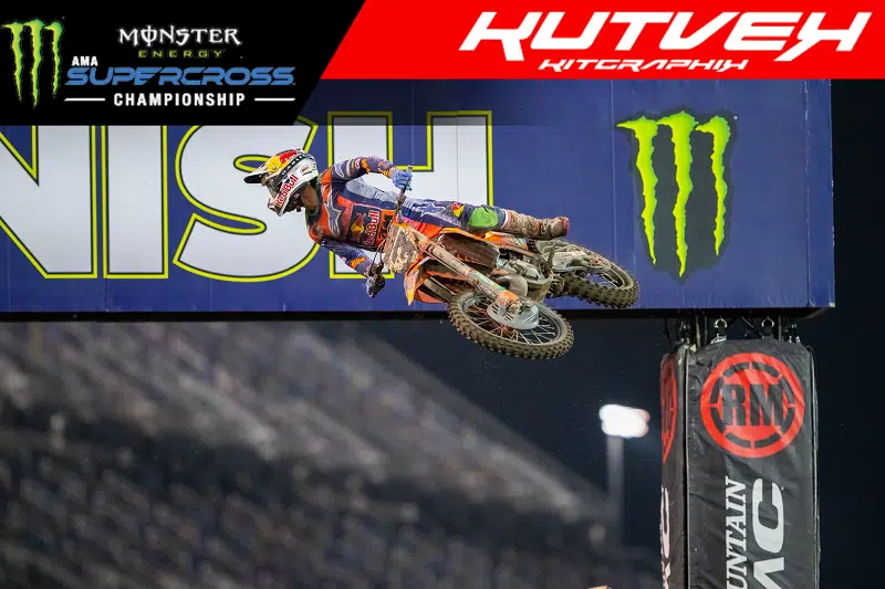 Pas ouf ou pas, Daytona, ça finit toujours pareil : par une victoire d’Eli Tomac. Sa huitième, quand même, sur le célèbre circuit de vitesse. Ça commence à faire ! Sa 57e en tout, ce qui le rapproche encore un peu du record des 72 de Jeremy McGrath. Encore quinze pour rejoindre le King, ça risque quand même de faire beaucoup, surtout qu’Eli ne rajeunit pas… Quoique. Parti aux alentours du top 5, le pilote KTM a fait la même que la semaine dernière, en mieux, à savoir passer tous ses adversaires directs aux points. À Arlington, il a cependant buté sur Hunter Lawrence. Cette fois, il est allé au bout. ET3, de retour avec un pneu sable cette fois, n’a rien fait de particulièrement fou pour aller arracher cette victoire, à part mettre de l’intensité dans chaque coup de gaz, chaque saut ou chaque virage, comme le Seb Tortelli de la grande époque. En pleine confiance, il a su saisir ses chances dès qu’elles se sont présentées, sans hésitation. Du grand Tomac, donc, qui revient à un petit point de la plaque rouge. Notez que lui et Hunter ont fait le break, les suivants au classement étant les duettistes Ken Roczen et Cooper Webb, déjà relégués à 20 points derrière. Ça fait beaucoup, surtout derrière des pilotes aussi réguliers… Signalons enfin que la seule erreur d’Eli a été de soulever le trophée un peu trop fort, en le cassant et en le prenant dans les dents au passage. Il était paraît-il furieux de l’incident, il est vrai un peu ridicule…