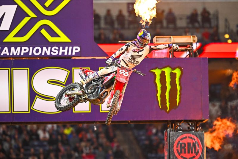 C’était soirée Triple Crown à Indianapolis hier soir, et comme d’habitude, le format n’a pas déçu en proposant des courses animées sur un terrain plus défoncé qu’un champ de manoeuvre militaire. Au bout du suspense, Hunter Lawrence est allé chercher son deuxième succès de carrière en SX 450, face à un Eli Tomac une fois de plus très en forme. Cooper Webb monte sur le podium, sans avoir brillé. En 250, on a enfin vu le vrai Cole Davies, qui remporte les trois manches et l’emporte ainsi devant Jo Shimoda et Seth Hammaker qui sauve le podium malgré une soirée difficile et une chute.