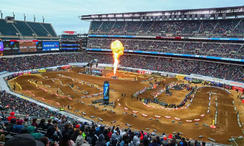 Round 15 du championnat SX US 2026 samedi à Philadelphie. Et deuxième course de suite avec un gros risque de pluie, donc on croise les doigts une nouvelle fois. On notera que c’était la même chose l’année dernière dans la ville de naissance du Prince de Bel Air, mais les spécialistes de chez Dirt Wurx ont réussi à sauver la piste. Espérons que ça marche aussi ce coup-là !