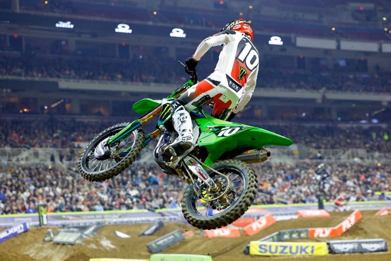 Enfin, encore une course catastrophique pour Chase Sexton à Saint Louis, après sa belle deuxième place de la semaine dernière… Parti aux alentours du top 10, le pilote Kawasaki était sixième quand il est tombé. Avant de se mettre un arrêt buffet de l’espace dans le gros enchaînement après avoir confondu un rythme avec un autre. Et voilà, une soirée de plus à oublier pour Chase. Ça commence à faire beaucoup.