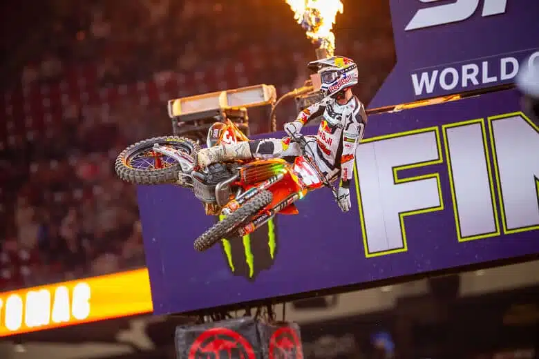 On a vu ce que ça a donné sur ces quatre premières courses. Et encore, ça aurait pu être encore mieux sans une chute bête ce samedi à Houston, où il a accroché la pédale de frein arrière dans un enchaînement. Ce qu’on voit, surtout, c’est la manière. Une attaque de tous les instants, digne des plus grands moments de sa carrière, et une agressivité positive qui en disent long sur la façon dont il se sent sur cette KTM, bichonnée par Jade Dungey, le frère de l’ancien rival, un certain Ryan ! On verra bien à l’issue de la saison, au moment de faire le bilan, mais il semble bien que cette association un peu par défaut à la base puisse déboucher sur quelque chose de grand. Pour rappel, personne n’a jamais gagné le titre SX à plus de 30 ans. A 33 ans, Eli est déjà le deuxième plus vieux vainqueur de finale SX (derrière Justin Brayton et son unique victoire, à Daytona). De toute façon, avec déjà deux victoires et la plaque rouge, l’association KTM/ET3 est déjà une réussite. Alors, qui met une pièce sur le vieux lion pour le titre SX ?