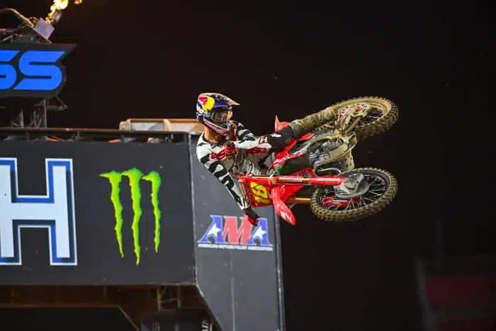 Quelle soirée folle à Nashville ! Comme l’année dernière, la course dans la capitale de la musique country a eu des effets sur les championnats. En 450, Jett Lawrence a repris seul la plaque rouge en s’offrant une victoire assez nette qu’importante. En 250, le Showdown a complètement rebattu les cartes, avec la victoire d’RJ Hampshire et le changement de plaque rouges sur les deux côtes !