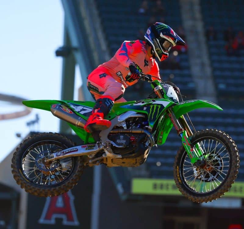 Soirée mitigée pour son coéquipier et tenant du titre Cooper Webb. Pourtant, ça partait plutôt bien avec un bon départ en heat, vite gâché par une erreur inhabituelle de sa part, quand il est allé éperonné son pote Aaron Plessinger comme Asterix un bateau pirate. Ensuite, il avait quand même réussi à se hisser en tête de la finale, avant le restart. Pas si mal parti au deuxième départ, il a tout perdu dans le premier virage et s’est retrouvé autour du top 10, avant de chuter en remontant. Bref, une soirée pas idéale mais pas catastrophique non plus pour le champ’, qui sait très bien que la saison est longue. Et qu’il sera sans doute là quand ça compte. Notez qu’il a reconnu publiquement utiliser le modèle 2025, qu’il connaît par cœur, plutôt que le nouveau châssis 2026.