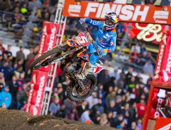 Voici les meilleurs moments des finales 250cc et 450cc de la dixième épreuve du championnat US de supercross qui se disputait sur le prestigieux anneau de Daytona.